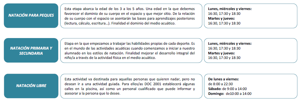 Horario de atención al público, Registro y de apertura de los centros deportivos de gestión directa