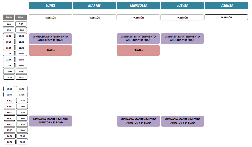 Horario de atención al público, Registro y de apertura de los centros deportivos de gestión directa