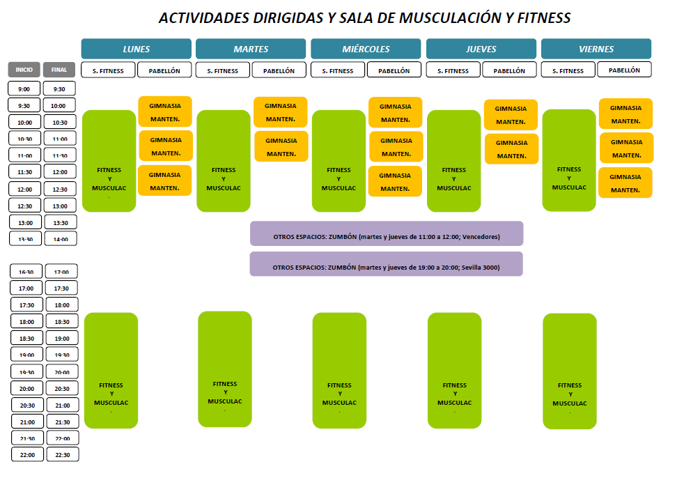 Horario de atención al público, Registro y de apertura de los centros deportivos de gestión directa