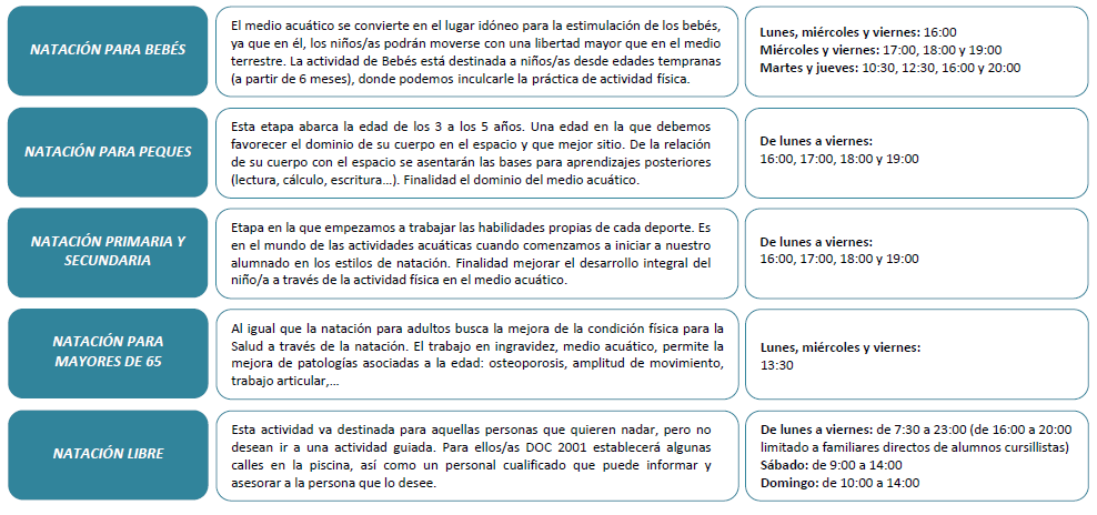 Horario de atención al público, Registro y de apertura de los centros deportivos de gestión directa