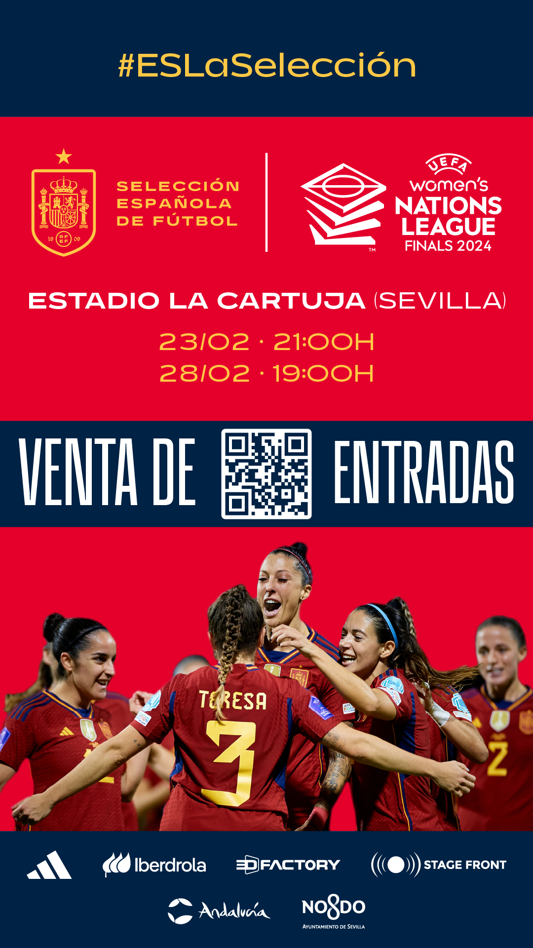 Sevilla acogerá los días 23 y 28 de febrero los dos partidos que disputará la Selección Española de fútbol en la Final a Cuatro de la UEFA Women’s Nations League. El primer encuentro, la semifinal ante Países Bajos del viernes 23 de febrero, se celebrará a las 21:00 horas en el Estadio de La Cartuja. El miércoles 28 de febrero, a las 19 horas, el mismo recinto será el escenario del duelo por el título o bien por el tercer y cuarto puesto con Francia o Alemania como rival. Además de pelear por un título, la actual campeona del mundo lucha también por conseguir un billete para los Juegos Olímpicos del próximo verano en París.