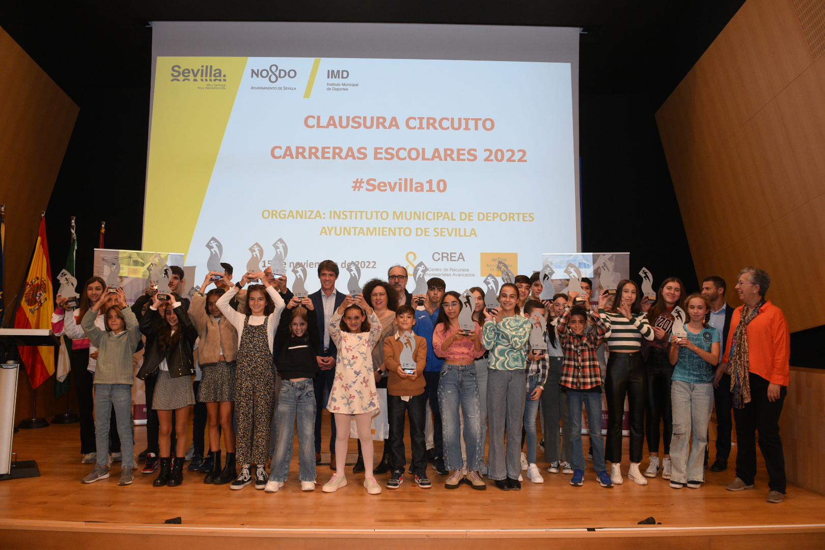 Unos 8.500 escolares han participado este año en el circuito de carreras populares Sevilla10 que ha entregado los premios de la temporada 2022 en las instalaciones del CREA de San Jerónimo. El delegado de Transición Ecológica y Deportes, David Guevara, ha destacado que esta propuesta “consolida a Sevilla como ciudad del deporte gracias a la accesibilidad de los más jóvenes a un modo de vida sana. Tenemos la mejor ciudad del mundo para organizar grandes eventos, pero también, tenemos la mejor ciudad del mundo para que nuestros escolares practiquen deporte, se diviertan y destaquen por su talento como todos los que hoy premiamos por sus resultados. El año que viene volveremos a impulsar este circuito Sevilla10 con novedades que mantengan la línea ascendente de participación y el acceso de los más jóvenes a esta propuesta que cuenta con todas las garantías públicas del IMD y con la mejor ciudad del mundo para correr”.