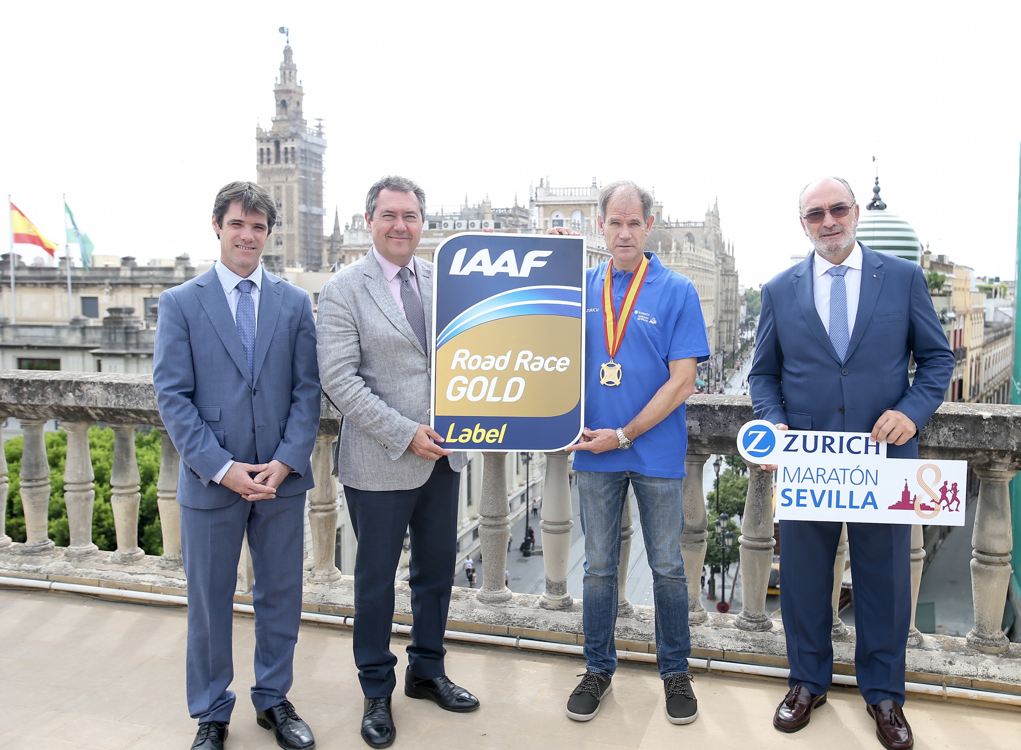 El Zúrich Maratón de Sevilla ha sido reconocido por la IAAF, Federación Internacional de Atletismo, con su sello 'IAAF Gold Label' que avala su organización con el máximo reconocimiento posible. Con esta distinción, esta prueba pasa a ser reconocida como una de las 31 mejores del mundo y una de las 12 mejores de Europa tan solo un año después de que obtuviese el sello Silver Label, por lo que se consolida y aumenta su prestigio y posicionamiento como "una de las mejores carreras del mundo" en palabras del alcalde de Sevilla, Juan Espadas. Abel Antón, doble campeón del mundo de maratón, ha sido el encargado de hacer la entrega del sello IAAF al alcalde Juan Espadas, y lo ha hecho luciendo la medalla de oro que ganó en el Mundial de Atletismo organizado en Sevilla en 1999 junto a David Guevara, delegado de deportes del IMD; Fran Chico, director de Motorpress Ibérica, y Aniano Bobis, de Zurich Seguros.