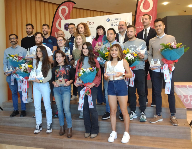 Al acto han acudido una treintena de deportistas que terminaron el domingo el Zurich Maratón de Sevilla. Entre los premiados han estado los primeros sevillanos y sevillanas de la clasificación: Teresa Díaz Ramos, Celia Romero Gallardo y Candela Castel Cantalapiedra, en categoría femenina, y Antonio David Jiménez Pentinel, Antonio Burgos Lebrija y David Tejada Valle, en categoría masculina.