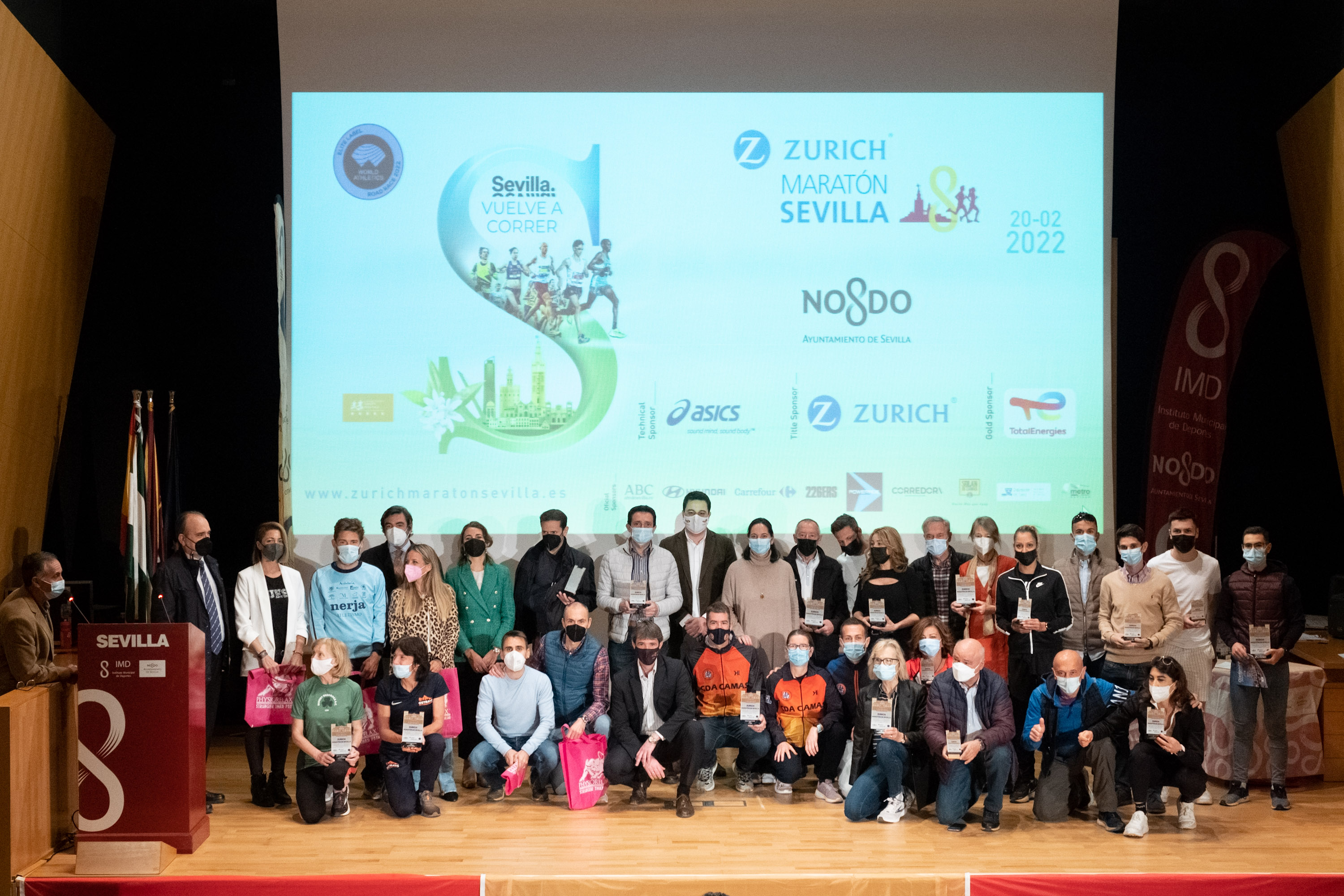 Entre los galardonados, los sevillanos Rubén Álvarez y Carmen Gutiérrez han hecho doblete al recoger el premio que les acreditaba como mejores representantes locales y andaluces, el atleta del Club Nerja con un crono de 2:20.52 y la representante del C.A. Trotasierra con 2:53.10. Entre los atletas con diversidades funcionales, primeros puestos para Antonio Martínez (Miguel del Río E.P.A.) y Susana Ogea (Triboost), imponiéndose entre los clubes el C.D. Atletismo Camas.