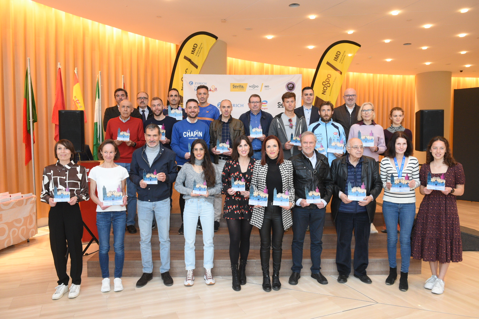 Manuel Nieto, gerente del Instituto Municipal de Deportes del Ayuntamiento, acompañado por representantes de los principales patrocinadores del Maratón de Sevilla, Zurich, TotalEnergies e Hyndai, ha sido el encargado de realizar dicha entrega de distinciones a los primeros clasificados de cada una de las categorías. En este sentido, han sido distinguidos los primeros corredores en15 categorías, por edades desde júniors y promesas hasta Máster 75, además de a los atletas con discapacidad, andaluces, sevillanos y los tres primeros clubes.