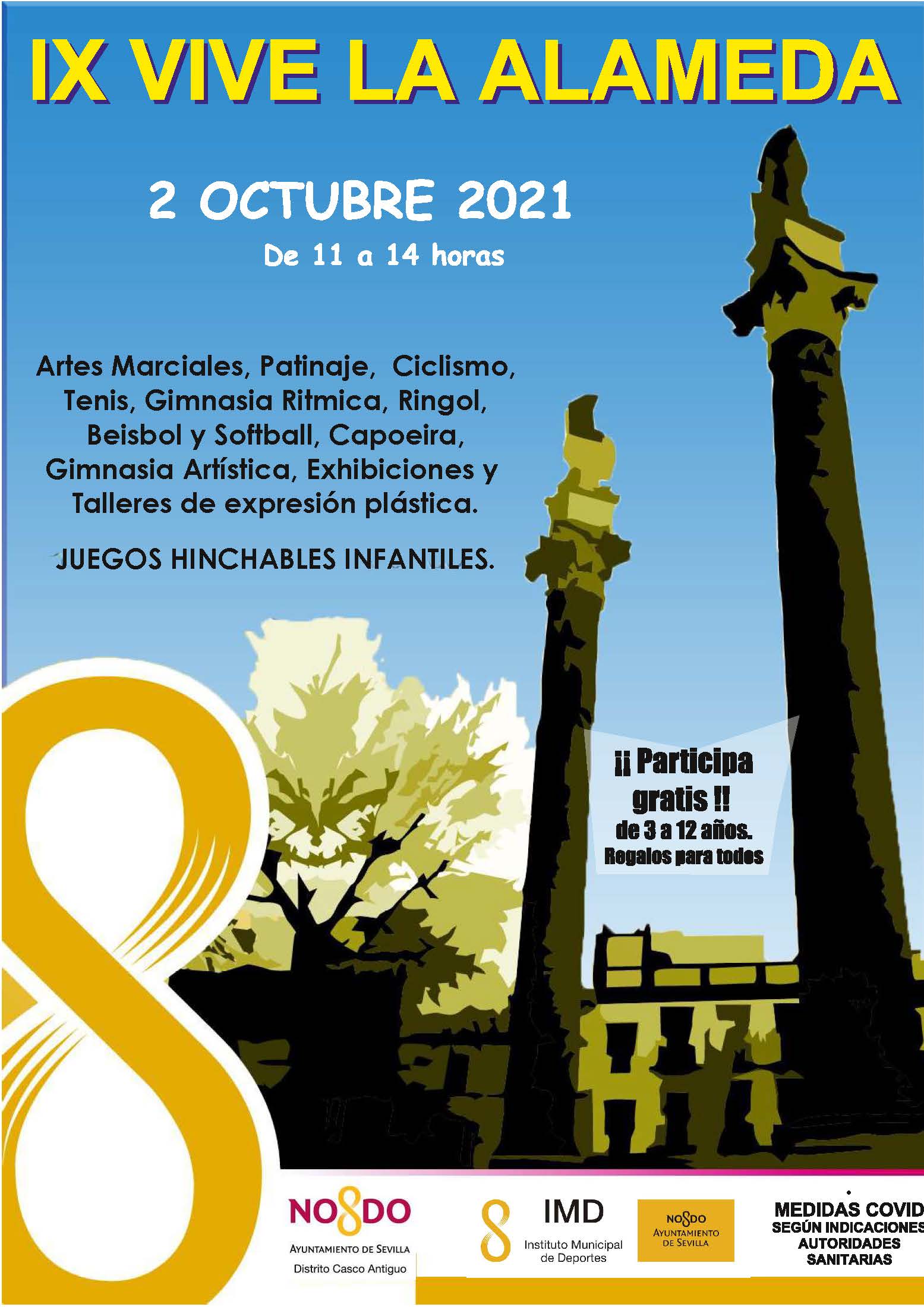 "Vive la Alameda" es una cita habitual de este programa y celebra ya su 9ª edición. El sábado 2 de octubre entre las 11 y las 14 horas la Alameda se llenará de actividades y talleres multideporte dirigidos a niños de 3 a 12 años. La participación es gratuita y cuenta con la colaboración de los centros educativos del distrito. Entre las actividades que los niños podrán disfrutar se encuentran artes marciales, patinaje, ciclismo, tenis, gimnasia rítmica, ringol, béisbol softbol, capoeira, gimnasia artística, exhibiciones y talleres de expresión plástica.